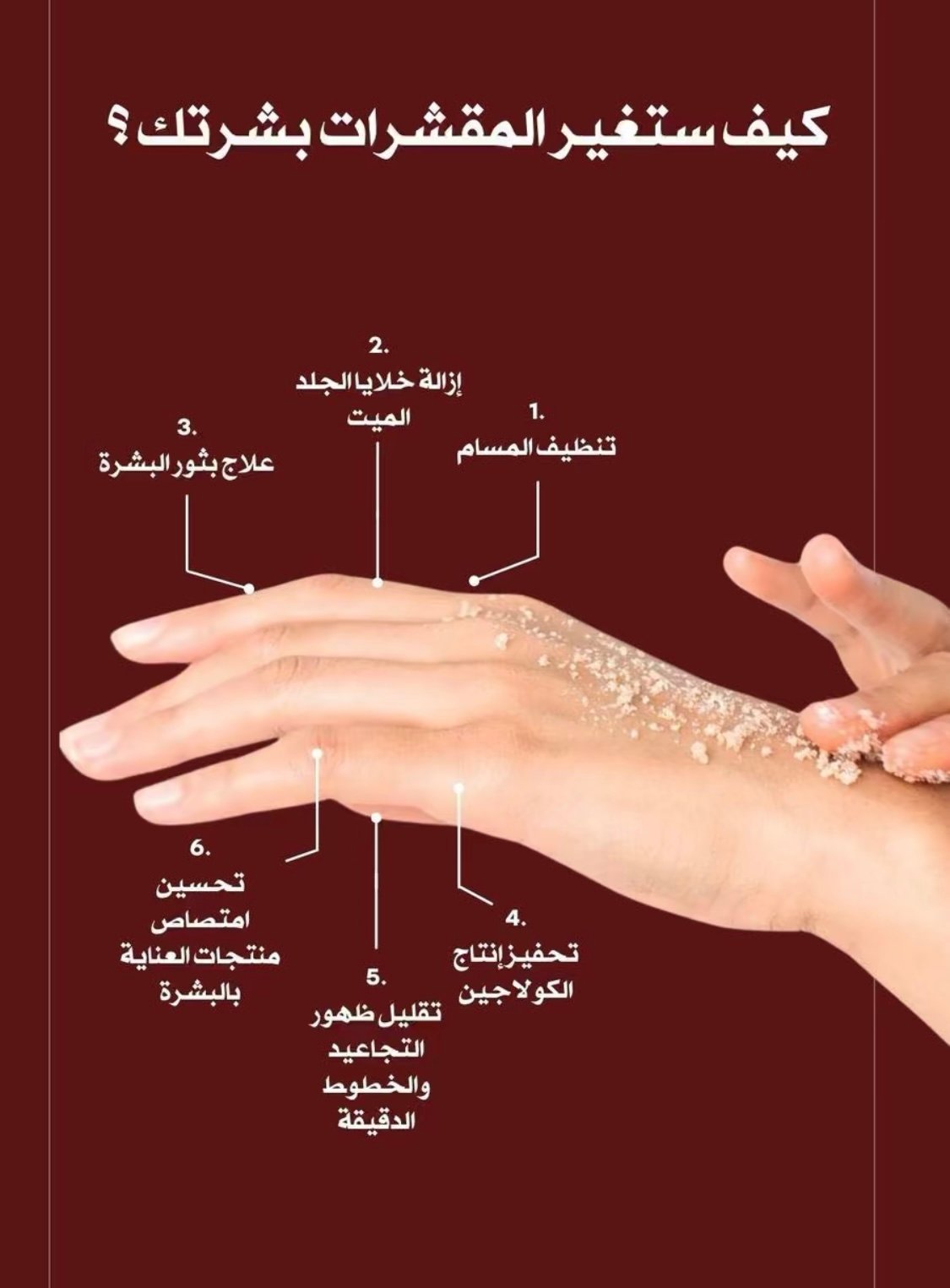 مقشر ومبيض في نفس الوقت يعطي نتيجه مذهله من ثاني استخدام يستعمل بعد الشور يوضع كميه علي الجسم والفرك المتوسط ثم يشطف ماء فقط